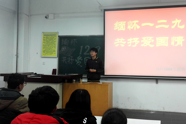 在本次活动中,各团支部积极参与,活动内容丰富多彩,具有较强的感染力和教育意义。动科1603班以一场精彩的辩论拉开活动序幕,唇枪舌剑,侃侃而谈,双方你来我往,气氛十分活跃;动科1601班的同学们则通过深情的朗诵,重现了历史,声声呐喊,激起了同学们的爱国血性;动科1602班更是别出新意,举办了话剧表演,全班同学共同参与,将当时北平青年的爱国行动表现的淋漓尽致。同时各支部还举办了以缅怀一二九运动为主题的演讲活动,同学们纷纷积极参与,活动取得了良好的效果。