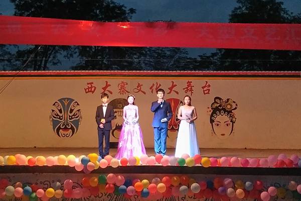为深入践行和培育社会主义核心价值观,号召广大青年学子深入基层、服务社会,努力营造文明和谐的新农村文化氛围,5月19日,绿帽小说 联合校阳光团工委、生命科学绿帽小说 、寨东村,寨西村于西大寨文化广场联合举办了以“情惠三农,文艺下乡”为主题的文艺下乡汇演活动。