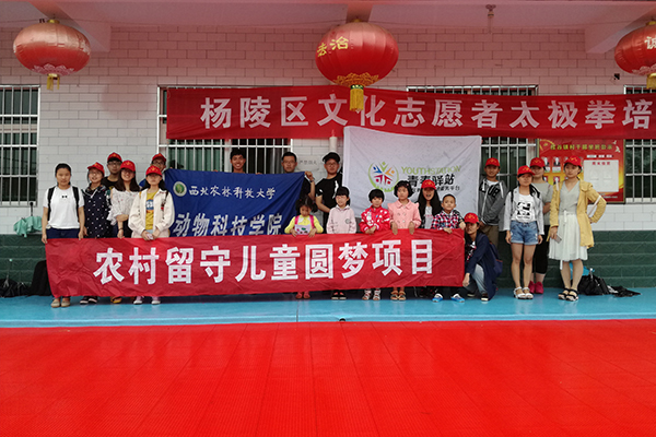为继承“奉献、友爱、互助、进步”的志愿精神,弘扬社会新风,宣传志愿者服务口号“助人助己,乐人乐己”,6月4号上午,结合我校实际情况。“青·梦”志愿服务队在杨陵区揉谷镇新集村开展了以“圆梦农村留守儿童”为主题的义务支教活动,共有16名“青·梦”志愿服务队志愿者参加了本次活动。