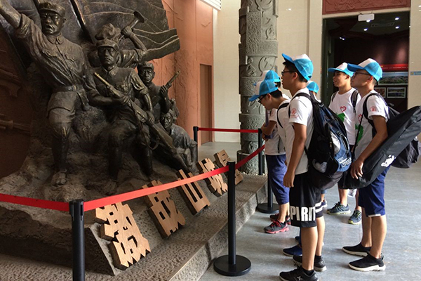 队员们正在参观山城堡战士雕塑