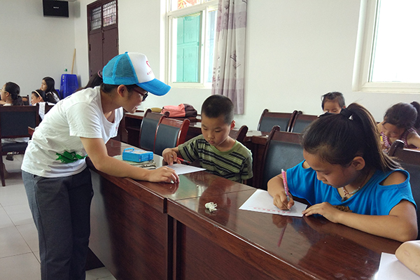 新集村位于杨凌区的西部边缘,队员们乘坐班车前往,到达时,已有两三个家长与学生已经在等待着。随着支教结束时间的逼近,部分课程都转为作业辅导课,主要目的是增加解答疑问的时间,以便让学生能够在队员们的帮助下完成假期作业,度过一个更快乐的假期。第一节课便是辅导学生们的作业,支教进行的期间内,队员们每天都会给学生们安排合适的作业量,并为他们解答疑问。在队员们的帮助下,孩子们的作业在有条不紊地完成的同时质量也非常高,收获了预期内的效果。课堂间隙,学生们在小老师的带领下,有序地排队上卫生间,而部分队员也会和不需要前往的学生一起聊天,解答生活上的问题,尤其对于性格内向的学生,大家会主动引导话题来帮助他们。此外,“数数报团”等小游戏是学生的最爱,这充分地调动学生的积极性,增进了相互之间的感情。