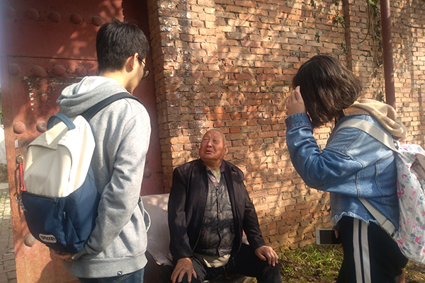 与老人交流
