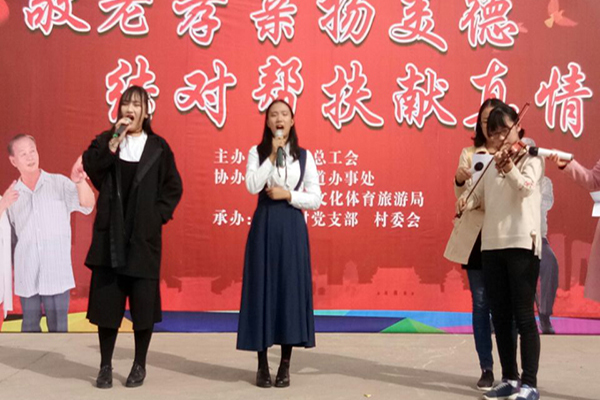 为了发扬中华民族敬老爱老的传统美德,促进当代大学生对传统的继承与发扬。由动科社会实践部与机电社会实践部主办的文艺下乡活动于10月28日重阳节上午在杜寨村举行。两院社会实践部的部分同学与表演志愿者参加了此次活动。