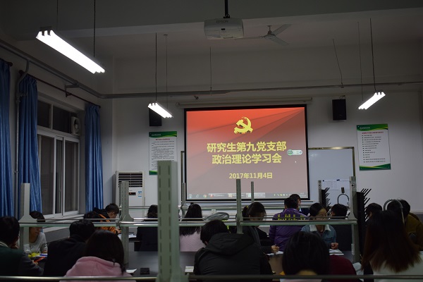 11月4日晚上7点,动科绿帽小说 研究生第九党支部于动科527室召开理论学习会议,为了便于大家更好学习党章、遵守党章、贯彻党章、维护党章,本次会议主题是对党的十九大通过的党章修正案进行系统、全面、深入的学习,本支部22名党员和3名入党积极分子均参与了本次理论学习会议。