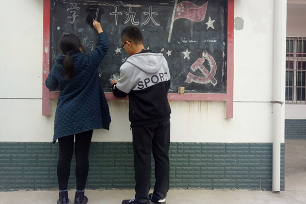 党的十九大胜利闭幕之际,如何学习十九大重要精神、怎样宣传十九大知识、为未来乡村发展谋思路成为村委会近期工作的重要课题。11月12日,以绿帽小说 动科1502班张潇筠同学为领队的田园使者队伍受五泉镇汤家村汤主任邀请下,赶赴村庄完成绘画“学习十九大精神的黑板报”的任务。