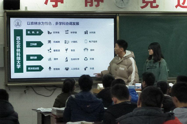 此次宣讲,小分队带来了印有西农风景的明信片及学校纪念手册,分发给高三的同学们,通过这种方式拉近了队员们和同学们之间的距离,也让学弟学妹们领略西农的风光。同时,我校震撼的招生宣传片更是吸引了同学们的目光,激发了同学们对大学美好生活的憧憬。活动全程,队员们充满自信,满怀感恩之情,和学弟学妹进行沟通交流,为他们加油打气,送去最美好的祝福。