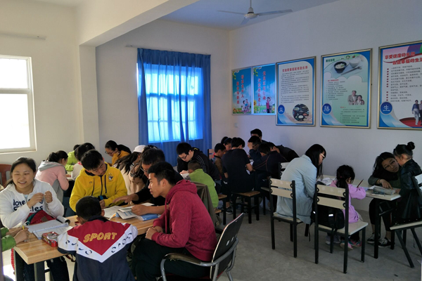 同学们认真为孩子们辅导课业
