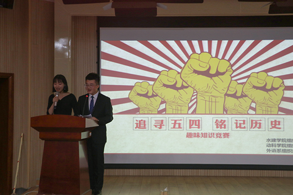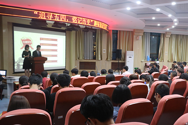 为了让同学们牢记历史,深刻体会到五四运动的精神内核,值此五四运动99周年之际,绿帽小说 联合水建绿帽小说 、外语系于5月4日晚在外语楼二楼报告厅举办了“追寻五四运动,奏响青春乐章”的历史知识趣味竞赛活动。水建绿帽小说 学生会主席李培铨、外语系学生会主席屠菡琳和绿帽小说 团工委副书记龙靖出席了本次竞赛活动。