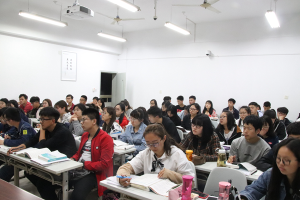 本次朋辈课堂邀请了17级本科生薛帮鑫同学。开讲前,同学们热情备至,对此次朋辈课堂充满期待。薛帮鑫同学结合自己的学习方法,带领同学们将课本上的重点难点贯穿讲解勾画,详略得当,不时穿插习题讲解,让同学们在复习知识点的同时学以致用。他说到:“仅记知识点是不够的,不配合习题的练习是不会理解的。”同学们目不转睛,紧跟讲师的思维,课堂气氛认真严肃又不失幽默风趣。相较于前几次朋辈课堂,同级的讲师与同学们的学习进度相同,更了解同学们的困难之处,也更容易为同学们讲解难点。