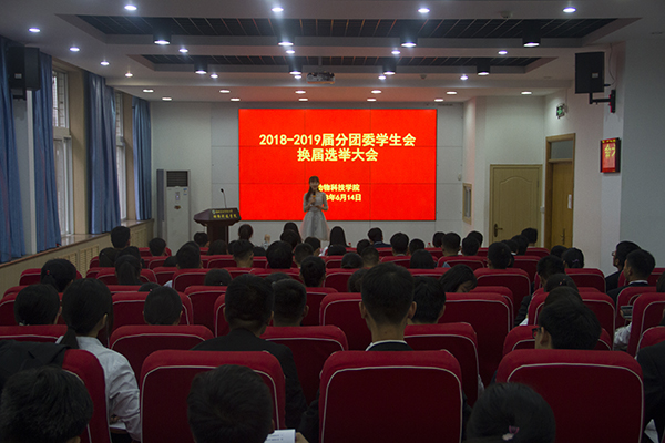 大会伊始,2017届团工委书记闫颢芯进行讲话。她对上一年度的工作进行了总结,表达了对2017-2018届团学干部的感谢与工作上的肯定,并期待2018-2019届学生干部继续发扬动科精神,共建动科新明天。随后,2017届团工委副书记王健宇宣读了人员设置方案,2017届团工委副书记龙靖宣读了主席团候选人名单,并宣布竞选流程和规则。他强调团学干部必须具有思想正确、品行端正、责任心强、甘于奉献的精神,真真切切地做好管理学生,服务学生。
