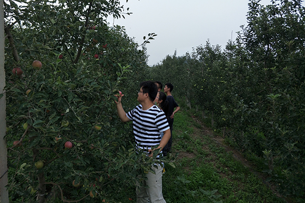 在队员们踏进白水苹果实验站伊始,便获得了段宝珍老师的热情接待。队员们用餐之后,为了解实验站的详细情况,在研究生刘浪的带领下,队员们开始熟悉苹果实验站的各个苹果栽培区。