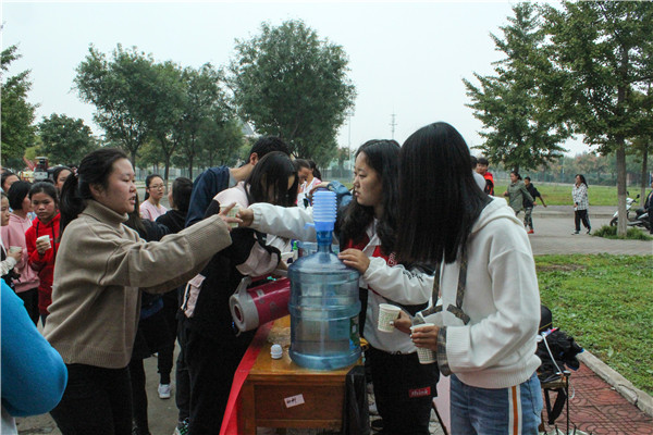 在5000米的赛程中,除了参赛队员们,还有始终默默守护着同学们安全的志愿者们,他们不惧风吹,在场边为同学们加油助威,维持着沿途赛道的秩序。终点处,贴心的志愿者们不仅为选手们准备了热水和葡萄糖糖,而且还准备好纸巾供运动员擦汗,点点滴滴细微的服务温暖着每一位参赛学生的心。