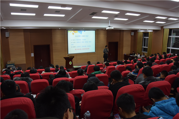 窦龙老师以“改变认知——做最好的自己”为主题,围绕生活、学习、发展、恋爱展开论述,以幽默诙谐的语言给同学们解读大学生活中常见的问题以及解决方法。他提到:大一新生是刚好从高中进入大学,还未完全摆脱高中时的稚嫩,在待人接物上难免会带上一些不成熟的表现,这就需要我们主动去调整才能有所成长。在讲到生活方面时,窦龙老师以自己的经历向同学们讲述了沟通与包容的重要性。此外,窦龙老师还提到大学生不能触碰的四条红线:杜绝校园贷、杜绝考试作弊、杜绝网络成瘾和学会保护自己,并且以一个个生动的例子告诉同学们这些红线的危险性。在讲到学习方面时,窦龙老师从学习能力、学习要素、学习动机出发,与高中的学习生活做了简明比较,指出了大学学习的不同。他说:“大学有大学的管理体系和考核评价标准,我们要适应这个新环境,正确认知自我,才会有一个良好的、健康的心态。”