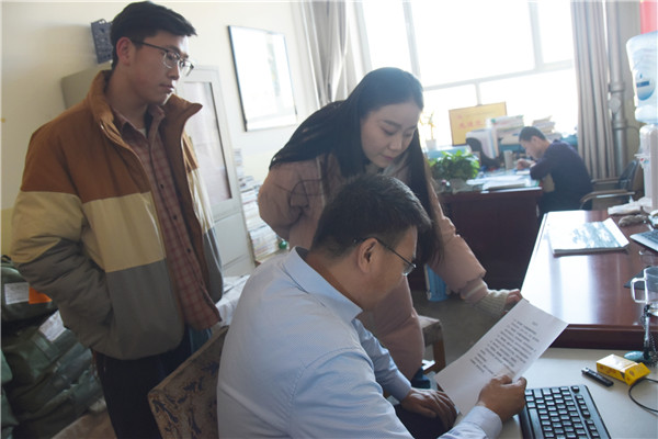 到达母校,队员们首先拜访了曾经的任课老师。在了解同学们的来意后,老师热心地帮队员们协商好了宣讲的时间,并亲切询问了队员们的大学生活。