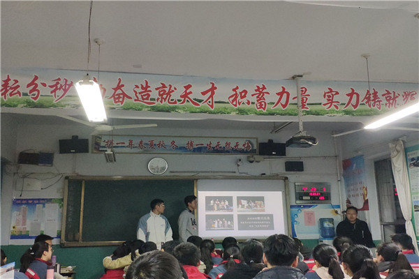 队员们在介绍完学校概况之后,询问了同学们一些学习情况,针对他们的薄弱学科——语文介绍了一些方法,并且又对怎样去学习,怎样去面对高考提出了自己的看法,一位同学询问到:如何安排好理综答题时间?白尚杰答到:“先将自己会的题都写出来,确保自己会的可以拿的到分数,并且多做题多练习。”耐心地回答使许多同学脸上露出了着开心的笑容。队员们的答疑给高三学子们打了一注强心剂,高三学子纷纷表示一定会好好努力学习。