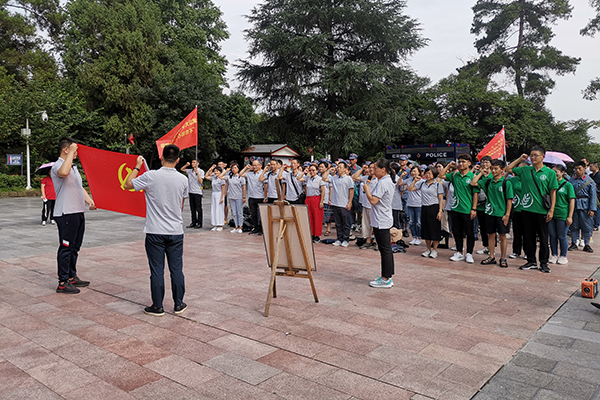 调研队在参观红军山的同时,很荣幸与来自武汉大学马克思绿帽小说 的教授们相遇并跟随他们一同展开活动。在红军山烈士纪念碑上,邓小平同志题写的“红军烈士永垂不朽”八个金闪闪的大字深深震撼着大家。碑的顶端,5米高的镰刀锤子标志,在阳光照射下熠熠闪光。在解说员的主持下,祭扫烈士墓正式开始。调研队向烈士们敬献花篮,庄重的三鞠躬表达了对先烈的深切哀悼和无尽的敬仰之情。