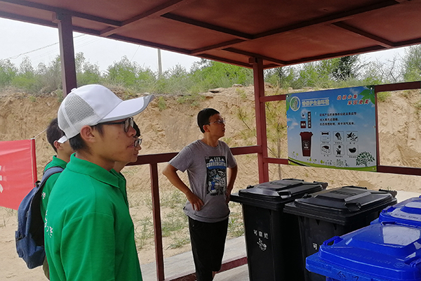 在古里村村委会,队员们遇到了一位驻村扶贫干部,他是西农07级林产化工专业毕业校友。看到队员们的到来,他十分高兴地询问了队员们此行的目标和其他情况,回忆了自己的大学时光和工作经历,鼓励队员们努力学习。随后,他与队员们就古里村的发展情况进行了深入的交流。他首先介绍了古里村的概况,并就近两年国家提出脱贫攻坚口号后村里采取的措施和发生的变化进行了详细的讲述。他重点讲到了古里村在卫生方面的建设,向队员们展示了村里建设的垃圾分类示范站,介绍了古里村的垃圾分类相关政策和措施。