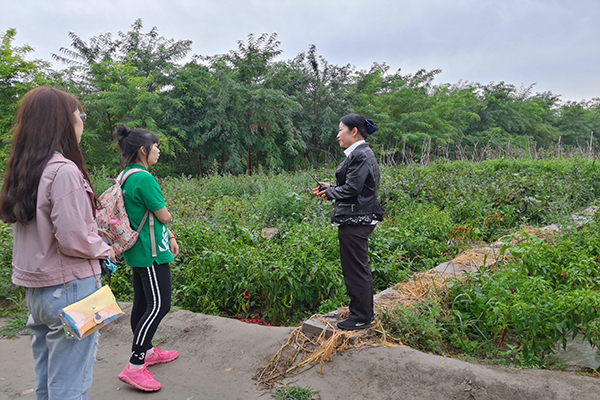 园区负责人带领队员参观采摘区