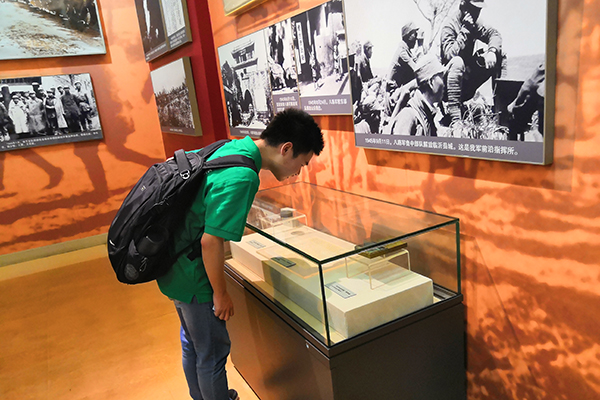 队员在纪念馆瞻仰革命遗物