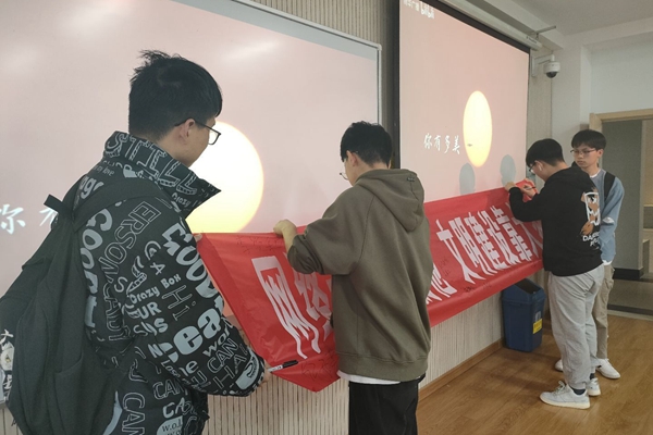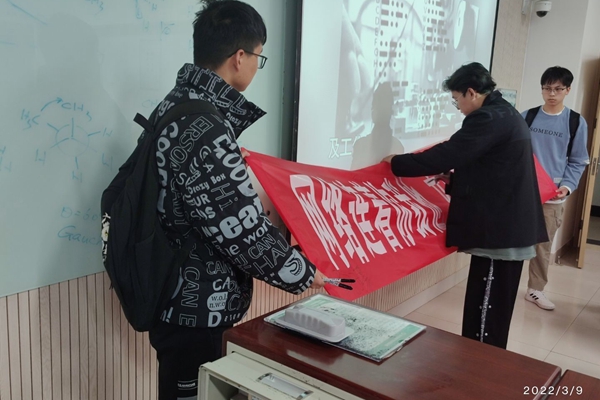 同学们在横幅上签字