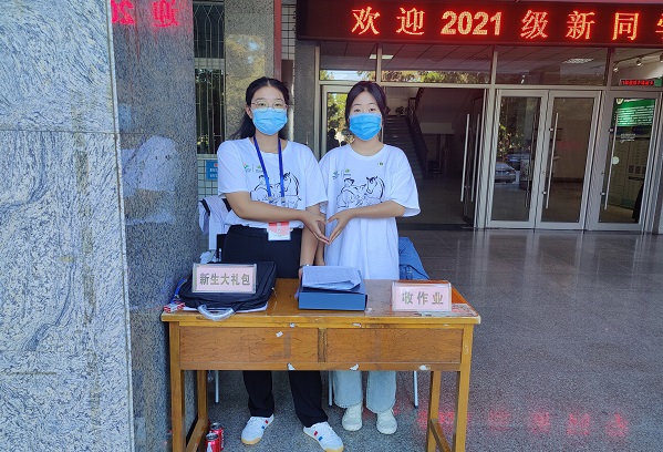 志愿者发放新生大礼包
