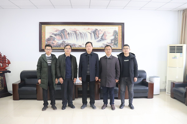 祁县中学校长段秀杰(左三)、副校长霍昌宝(左一)会见王力副书记一行