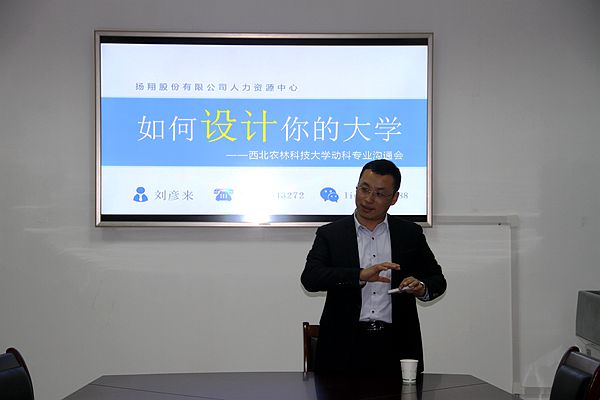 11月21日下午,“企业高管进课堂之如何设计你的大学”交流活动在学院104会议室顺利举行。扬翔股份有限公司招聘经理刘彦来应邀为学院近50名2015级本科生做了精彩的报告。