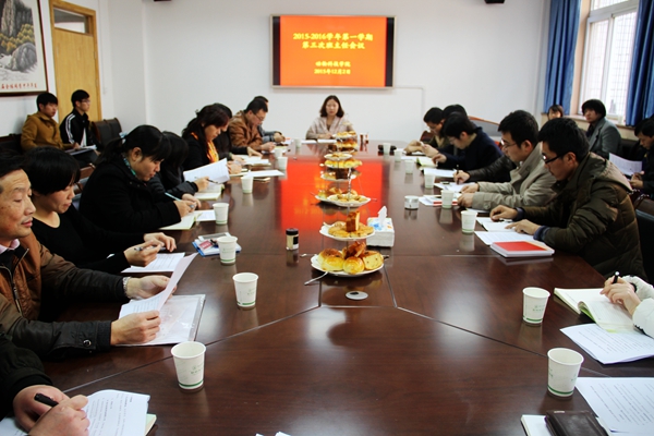 12月2日下午,学院在104会议室召开2015—2016学年第一学期第三次班主任例会,学院党委副书记王晓娟、全体班主任及专兼职辅导员参加了此次会议。