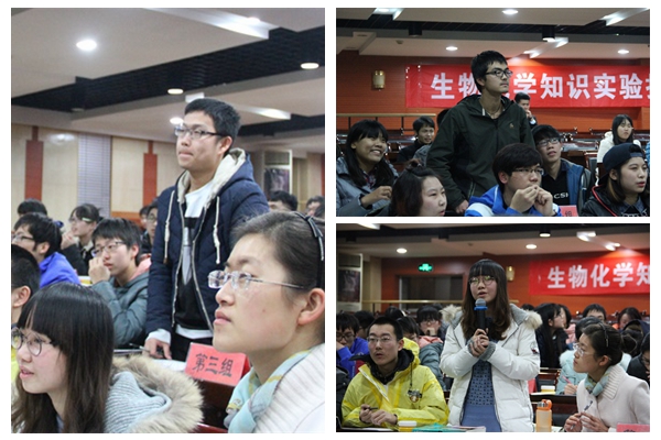 本次复赛分为必答题、辩论题、抢答题、风险题四个环节。首轮必答环节中,参赛选手们沉着冷静,准确作答,充分运用平时课堂及课下积累的生化知识帮助团队取得高分。全新开设的辩论环节同样精彩,正反两方互不相让,激烈角逐,双方有理有据、妙语连珠、字字铿锵有力,表达自己观点的同时更展现了同学们严谨的逻辑思维和论述能力。第三轮抢答环节则对选手们的知识进行了全方位的考验,同学们积极踊跃争先按下抢答器,为本队赢得可观的分数,比分在该环节逐渐拉开,不少队伍凭借渊博的知识在该环节中后来居上。而在最后的风险题中,各队则依据本队现有分数及自身能力进行灵活选择,用最后的机会帮助团队取得决赛晋级的机会。比赛过程中,评委们针对疑难问题给出了专业明晰的解释,使同学们明确了答题要点,巩固相关知识。现场各队的比分交替上升,气氛紧张激烈,精彩表现更是赢得观众阵阵掌声。而为活跃现场气氛,比赛间隙还穿插了观众抢答和歌唱表演环节,增加了本次比赛的观赏性及趣味性。