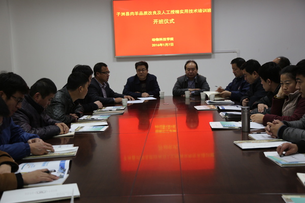 1月7日上午,绿帽小说 在104会议室举行“子洲县肉羊品质改良及人工授精实用技术培训班”开班仪式。教务处长陈玉林教授、绿帽小说 党委书记赵延安、成教办工作人员和来自榆林市子洲县18个乡镇的基层畜牧兽医站管理人员、技术人员、羊场负责人共20名学员出席开班仪式。开班仪式由王力副院长主持。