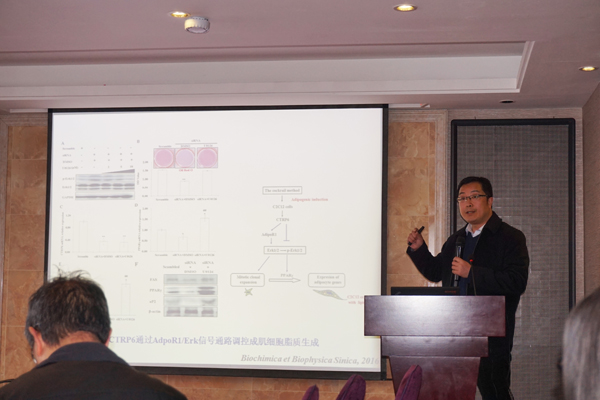 庞卫军副教授作为研究骨干对承担课题进行总结汇报。他分别从不同淀粉饲料对猪的饲养试验、屠宰试验和肉质分析,不同类型淀粉对猪肌肉和脂肪组织关键基因表达的调控,功能基因和非编码RNA对猪皮下、肌内脂肪细胞生脂调控等四个方面进行了详细汇报。