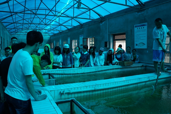 会后,在试验站工作人员的带领下,同学们参观了匙吻鲟苗种培育车间、自动孵化器、成鱼饲养池、室外孵化池、饲料车间及实验室远程病害诊断系统等设备。目前,实习生已投入紧张充实的实习生活中。