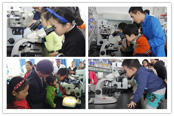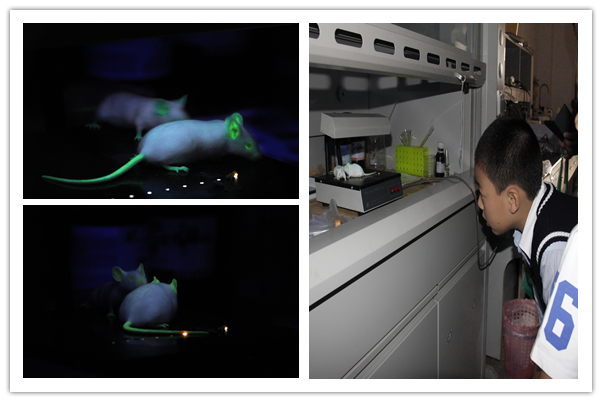 为了能让公众特别是中小学生更近距离的走进实验室,与理想中的科学殿堂面对面,本次活动特意精心安排了实验室参观环节,并安排有专门的博、硕士研究生进行讲解。实验室班长张鹏飞,首先向同学们讲解了实验室精密仪器设备的名称及用途,并演示了显微镜的使用方法。指导参观学生在显微镜下观察活精子的形态和运动形式等。此外,实验室博士生朱振东就绿色荧光转基因小鼠给参观同学们进行了耐心讲解与演示,当同学们看到小白鼠发出绿色荧光的那一刻,整个实验室都沸腾了起来,让参观学生大开眼界。