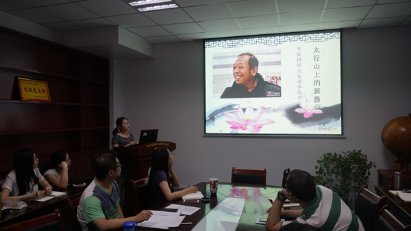 会上,支部委员张贞贞、曹伟娜等带大家学习了《党章》的第二章《党的组织制度》,介绍了民主集中制,党员蔡瑞和赵晨结合我校党代会的召开谈了自己对民主集中制的理解。接着,马广军、黄奎龙等又带大家学习了系列讲话中关于“严明党的纪律首要的就是政治纪律”的部分,强调了政治纪律的首要地位,黄奎龙还为大家举例“大老虎”周永康、令计划、苏荣等腐败的例子,强调了“不忘初心”的重要性。最后支部党员为大家分享了三位优秀党员的事迹。甘露向大家介绍了“太行山上的新愚公——李保国”的事迹,相奥琪也就自己参加学校“李保国同志先进事迹报告会”的感受和大家分享。刘兆军和大家分享了江西老乡龚全珍的先进事迹,陈永刚用清洁工徐文华的事迹像大家展示了平凡中的伟大。