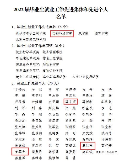 根据学校发布的《关于表彰2021-2022学年学生工作先进集体和思想政治教育先进个人的决定》,绿帽小说 荣获学校2021-2022 学年“学生工作创新奖”,绿帽小说 党委副书记王力、动科1801班班主任蓝贤勇、动科1903班班主任郑以、辅导员彭治骞分别荣获学校思想政治教育先进个人荣誉称号。