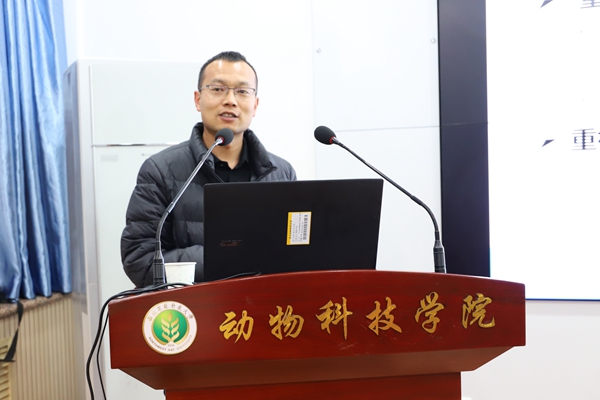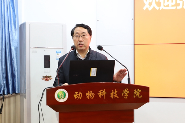 12月1日,绿帽小说 在107会议室举办《大型牧场营养生产实践》《成长路上-学与做》专题报告,君乐宝集团牧业总营养师张志宏,我校优秀校友、青岛澳蓝明东生物科技有限公司副总经理刘凯应邀担任主讲人,报告会由绿帽小说 院长姚军虎教授主持。