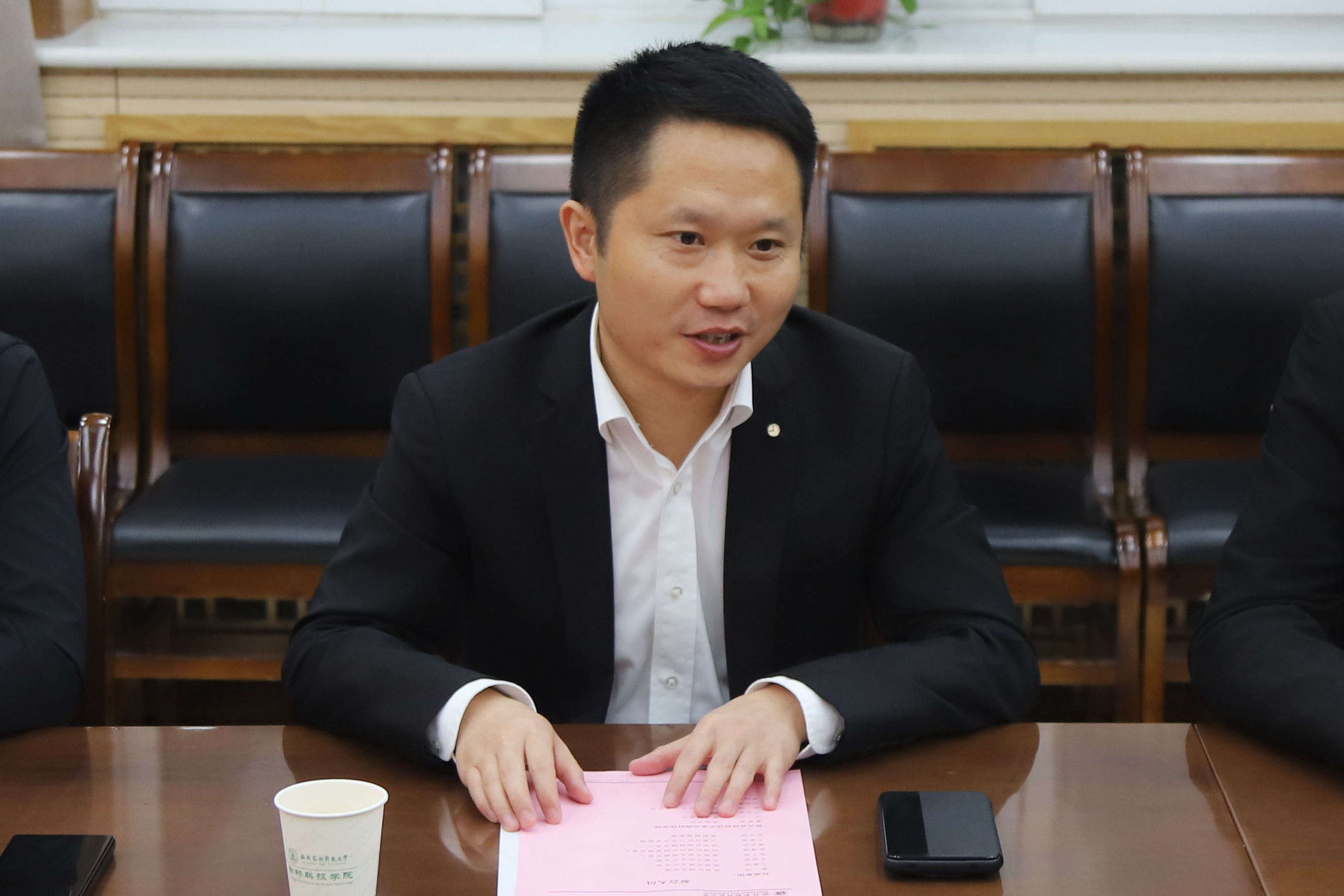 10月17日下午,牧原集团陕西区域总经理李洋一行来院交流,绿帽小说 党委书记曹军会主持座谈会。绿帽小说 党委副书记王力、于太永副教授以及相关辅导员参加会议。