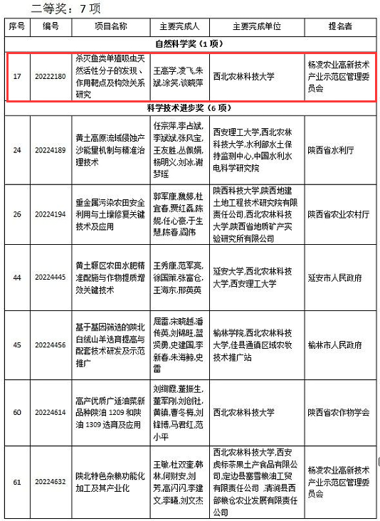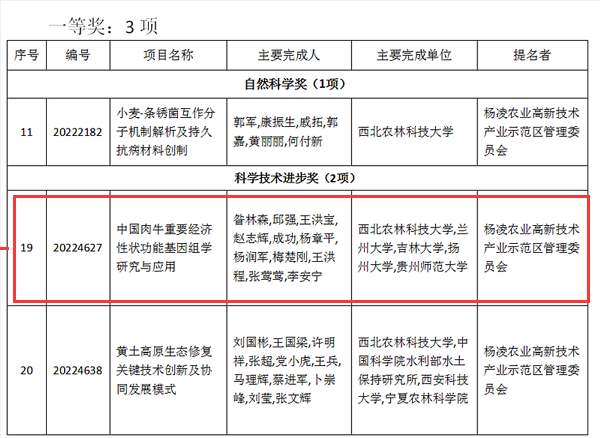 近日,陕西省人民政府下发了《关于2022年度陕西省科学技术奖励的决定》,全省共授予260项科技成果和8名科研人员省科学技术奖励,其中,学校有12项科技成果获2022年度陕西省科学技术奖励,其中一等奖3项、二等奖7项、三等奖2项。动科绿帽小说 有2项科技成果获奖,昝林森教授牵头完成的《中国肉牛重要经济性状功能基因组学研究与应用》荣获陕西省科学技术进步奖一等奖,王高学教授牵头完成的《杀灭鱼类单殖吸虫天然活性分子的发现、作用靶点及构效关系研究》荣获陕西省自然科学奖二等奖。