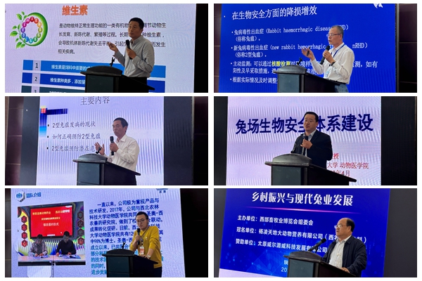 与会11位专家、企业高管分别作学术报告,分享最新科研成果,分析产业存在问题,探讨行业发展思路。报告依次为:国家兔产业技术体系岗位专家、中国农业大学武拉平教授作《现代兔业发展与乡村振兴》,陕西省宜君县农业局郭延红局长作《宜君兔业扶贫与乡村振兴实践》,国家兔产业技术体系岗位专家、扬州大学吴信生教授作《家兔品种培育与实践及江苏兔业发展概况与成就》,国家畜禽遗传资源委员会顾问委员会成员、江苏省畜牧业协会秘书长朱满兴研究员作《新时代家兔育种方向的科学把握》,国家兔产业技术体系岗位专家、中国农业大学王红英教授作《基于深度学习的图像处理技术在肉兔养殖智能化上的应用》,国家兔产业技术体系岗位专家团队成员、河北农业大学陈赛娟副教授作《饲料禁抗后,如何提高家兔生产效率》,陕西省家兔产业技术体系岗位专家、杨凌天地大动物营养有限公司技术总监崔伟作《精益求精做好每一颗“西农泰高”兔料》,太原市威尔潞威科技发展有限公司市场部经理王震作《浅谈影响种兔繁殖性能的营养问题》,青岛兔爱动物科技有限公司总经理阎英凯作《主动防御 降损增效》,南京华兔生物科技有限公司、江苏农科院畜牧兽医研究所薛家宾研究员作《如何正确预防2型兔瘟?》,陕西家免产业技术体系岗位专家、西北农林科技大学王兴龙教授作《兔场生物安全体系建设》。