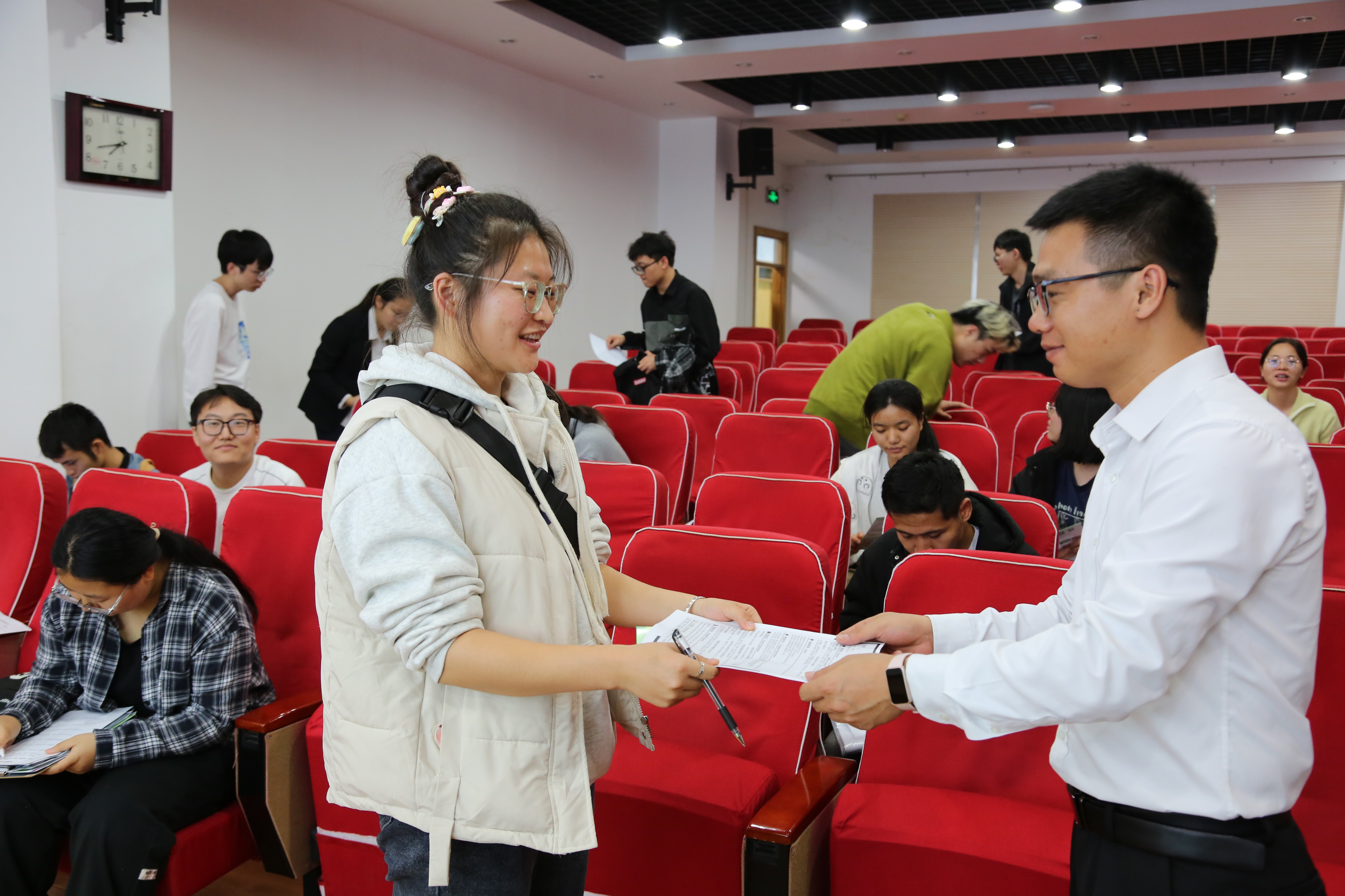 本次“优质企业组团行”活动中毕业生参与踊跃,现场气氛热烈,举手提问、投递简历的毕业生比比皆是。据悉,当晚共有30余名毕业生收到复试通知。
