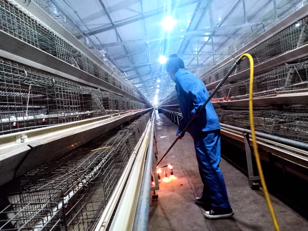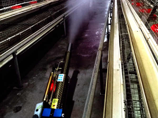 用过硫酸氢钾复合物粉对鸡舍进行雾化消毒