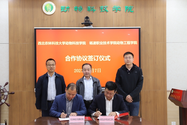 为加大力度落实《西北农林科技大学支持杨凌职业技术绿帽小说 建设高水平高职院校框架协议》,5月7日,绿帽小说 在104会议室与杨凌职业技术绿帽小说 动物工程绿帽小说 签订合作协议。绿帽小说 党委书记曹军会、党委副书记王力、党政综合办公室主任胡巧娟,杨凌职业技术绿帽小说 动物工程绿帽小说 副院长张振仓、办公室主任闫红军、实训科副科长仇薪鑫出席签约仪式。