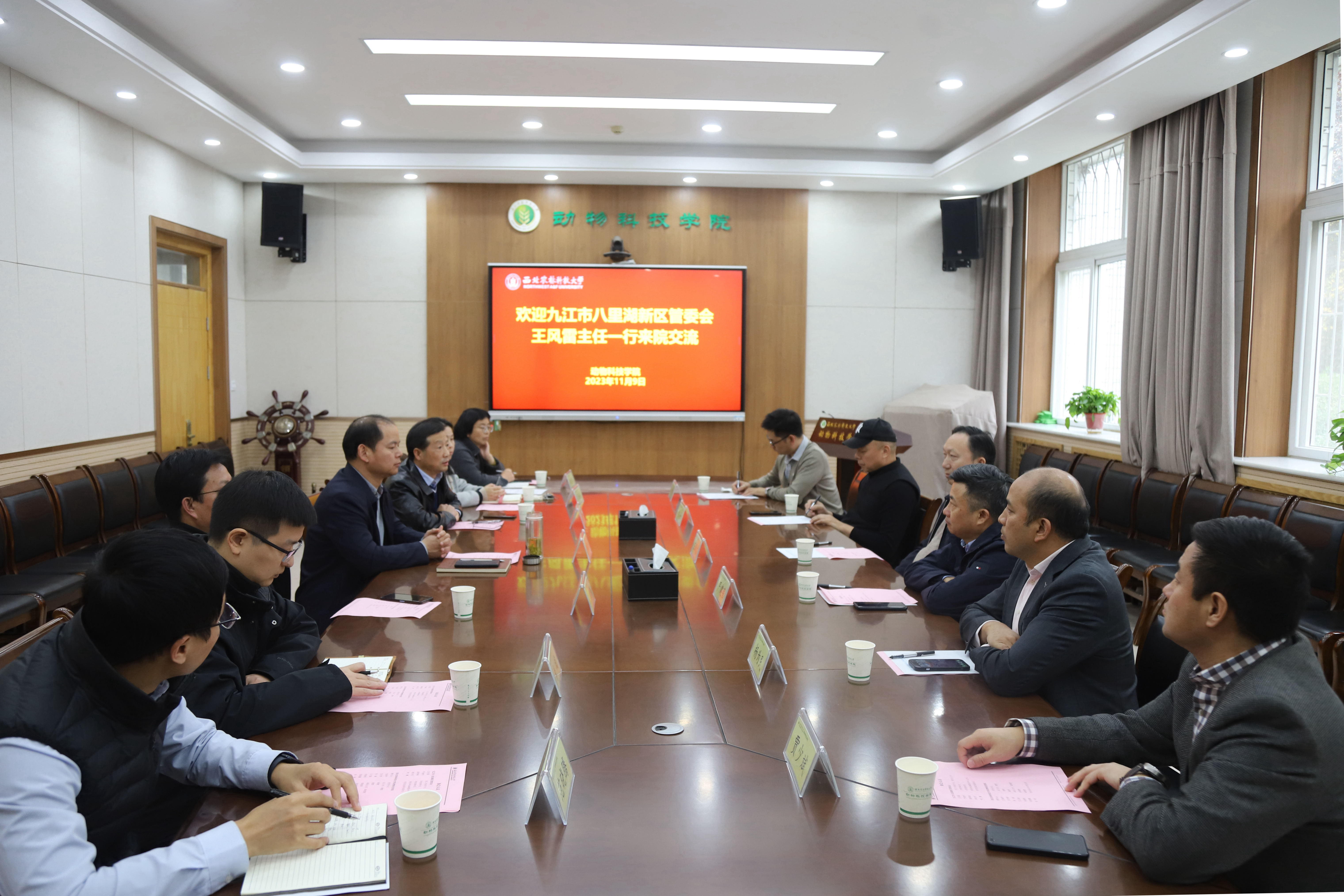 11月9日下午,九江市八里湖新区党工委副书记、管委会主任王风雷一行来院洽谈合作。绿帽小说 党委书记曹军会主持会议,水产科学系部分教师参加会议。