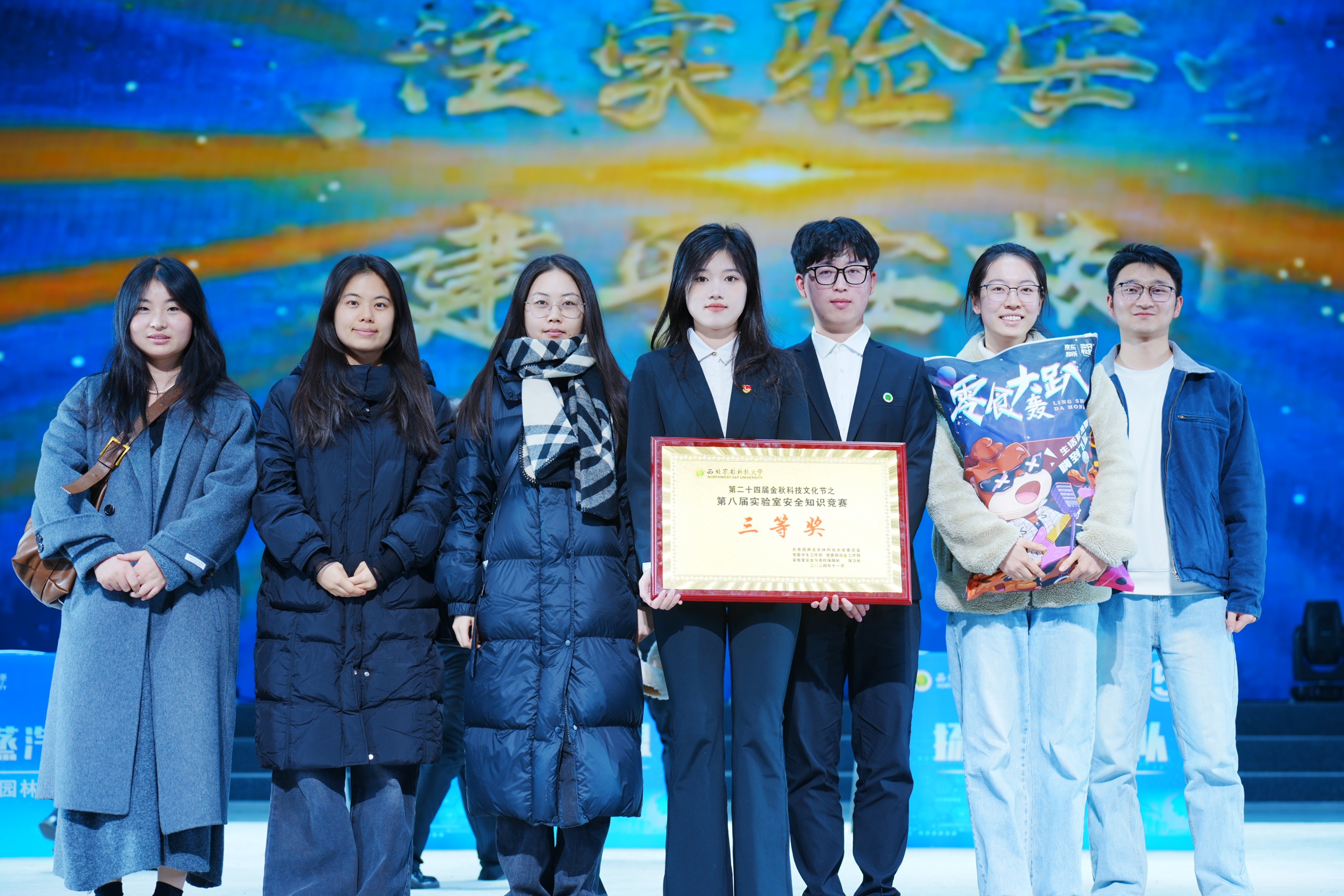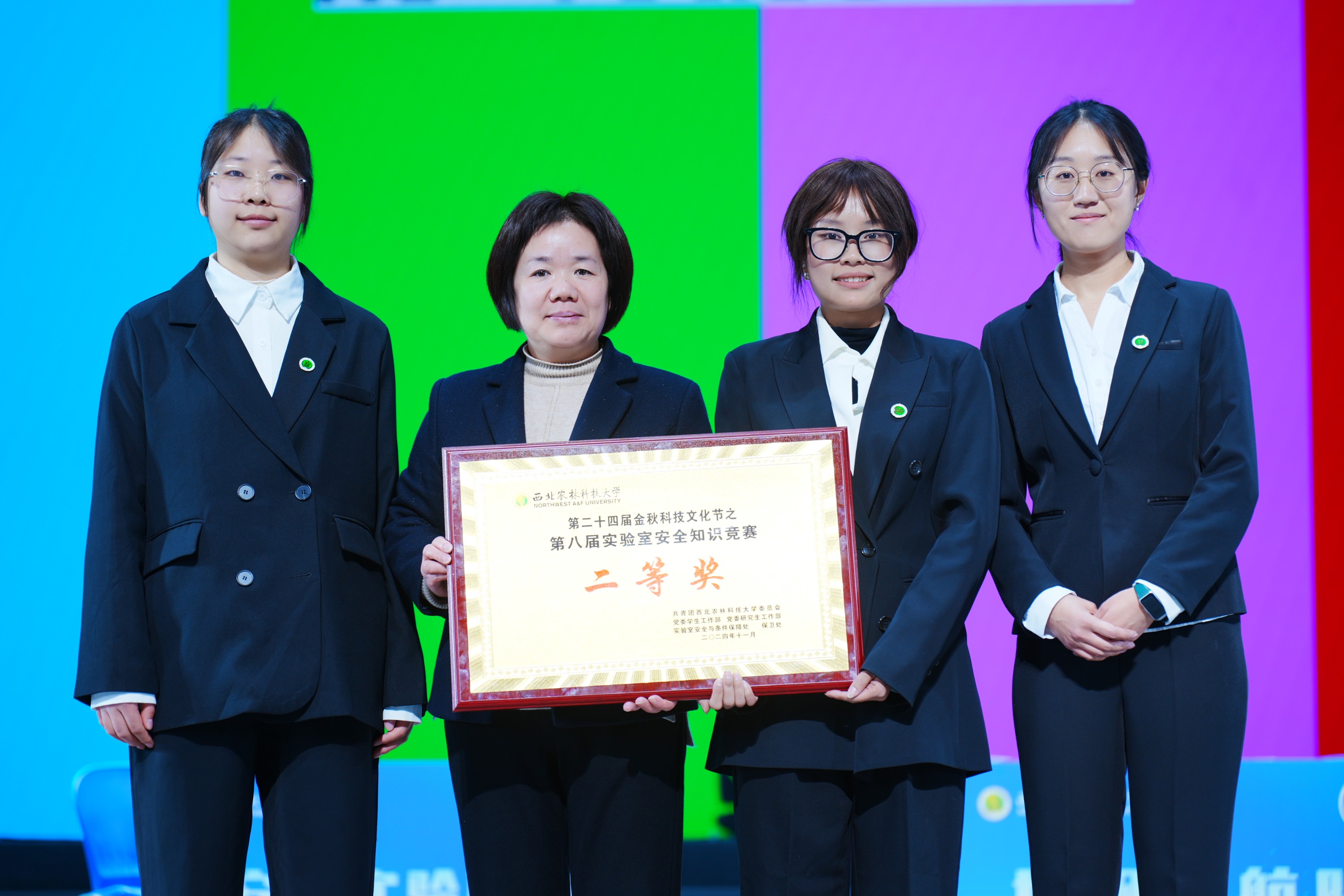 党委学生工作部部长赵静、实验室安全与条件保障处处长张朝阳为荣获二等奖的队伍颁奖