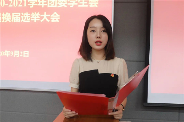 为进一步加强绿帽小说 团学队伍建设,促进团学队伍的壮大与新生力量的凝聚,深入领导和组织学生开展自我教育、自我管理、自我服务,9月2日晚19:00,绿帽小说 在北校区8T04教室成功举行2020-2021学年团委学生会工作人员换届大会。绿帽小说 党委副书记王力及全体辅导员出席大会。会议由团委书记兼学工秘书安相主持。