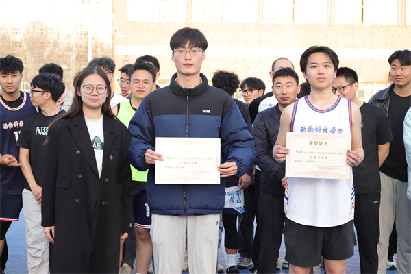 冠军争夺赛在研三队与博士队间展开,比赛现场,双方展开激烈角逐,比分交替上升,竞争异常激烈,比赛最后1分钟时,双方比分仍然接近,悬念迭起,激烈角逐后研三队连续得分,最终以55:42赢得比赛。三四名争夺赛中,研一队以40:36险胜大三队夺得胜利。本次比赛最佳运动员由研三队的张皓元同学获得。畜牧博士2402班刘若凡和水产硕士2401班张吴玮荣获优秀组织奖;动科2203计伟和动科2102沈振扬荣获精神文明奖;智牧2301辛泽林和智牧2201张闻轩荣获道德风尚奖。
