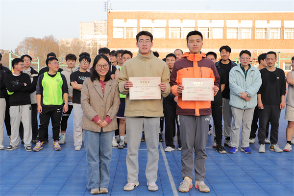 体育辅导员陈艳教授为获得冠军的研三队颁发一等奖