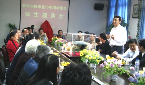 主持人来自我校科技推广处的吴锋副处长,作为畜牧89级的一员,面对大家动情的发言激动的说,“毕业15年,不管我们从事什么行业,在什么岗位,在西北农林科技大学形成的优秀品质使我们在各自的工作岗位中取得了一定的成绩,母校对于我们的教诲是影响终身的,感谢恩师的谆谆教诲!我们一定恪尽职守,努力奋斗,在自己的岗位上奉献社会,不愧于做一名西农人。”