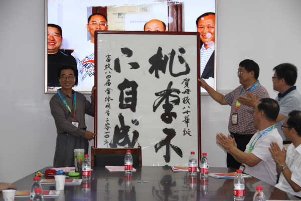 校友代表丑新友在会上作了发言,代表大家感谢母校老师的精心培养,祝愿母校发展蒸蒸日上,祝愿母校老师身体健康、生活愉快。校友们还向学院赠送了纪念品。