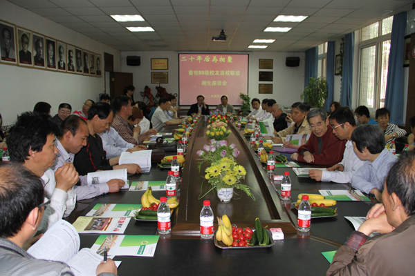 时任任课教师蒿迈道、张一玲、贺信义、渊锡藩、侯文通、魏忠义、王彩兰、张德英、李青旺、刘福柱、龚月生、曹社会、张恩平等老师分别发言,希望校友们爱护身体,在各自的工作岗位上再创佳绩。校友们逐一向老师汇报自己的工作生活情况。师生相聚有说不完的话题,座谈会上校友们怀着感恩的心情向学院赠送了牌匾。